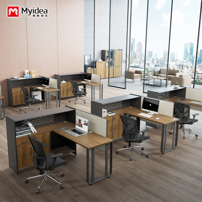 Single Employee Desk with Cabinet Storage, industrial Style Office Desk, Simple and Modern Computer Desk