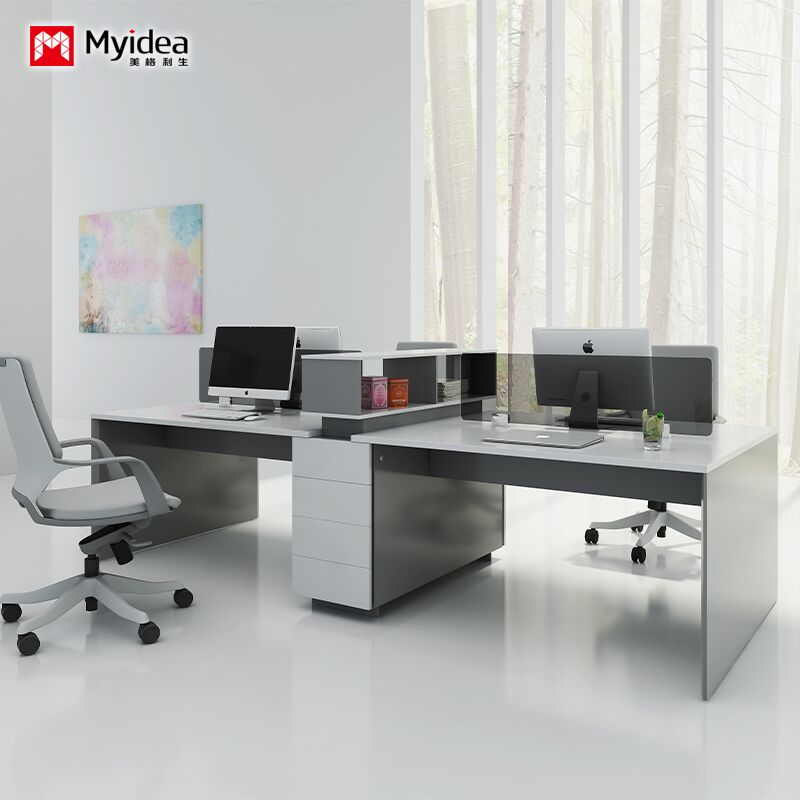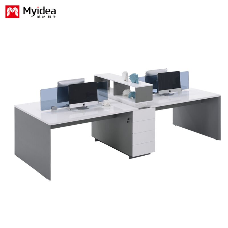 میز کارکنان 4 نفره با کشو های ذخیره سازی، میز اداری سفید رنگ آمیزی