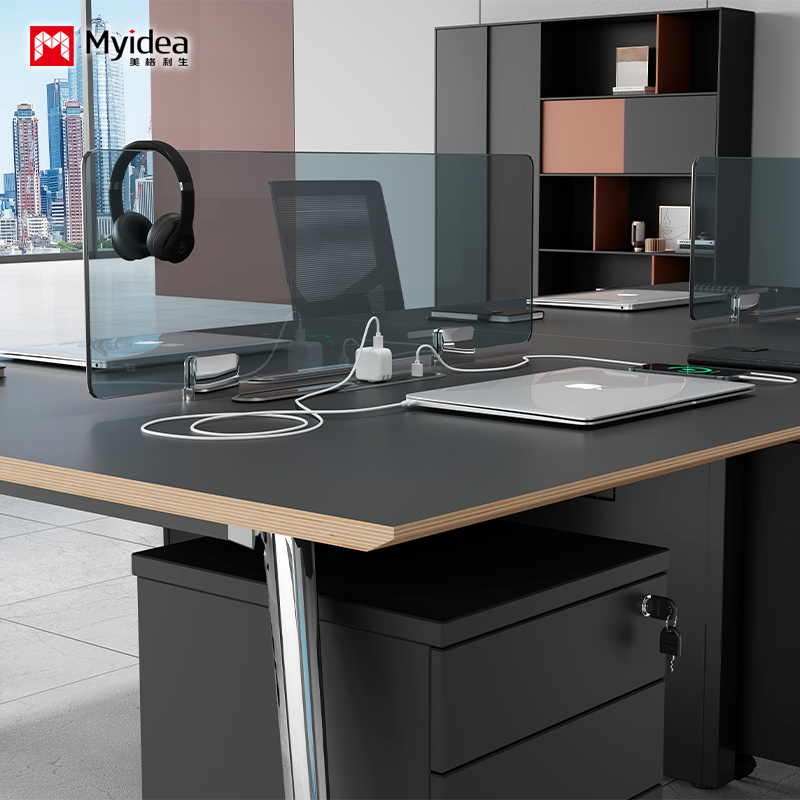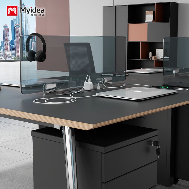 سفارشی سازی میز کار ساده و مدرن است، با 4 ایستگاه کاری دستی، میز تمیز و عملی است، با یک صفحه نمایش