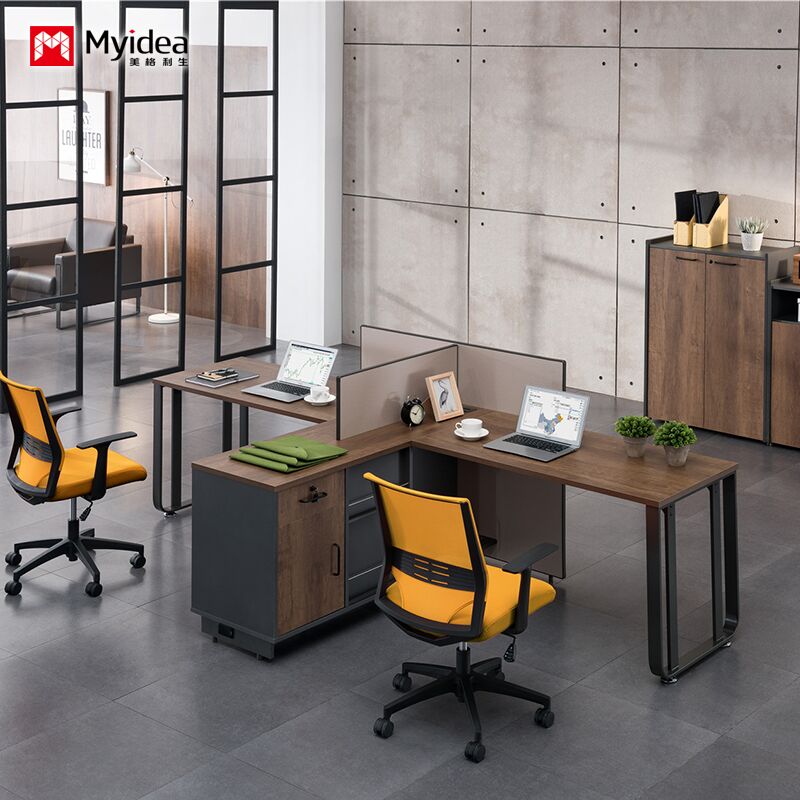 میز اداری دو نفره با کابینت کناری ذخیره سازی پایه فولادی، میز کارمندی ساخته شده از مواد تخته ملامینه