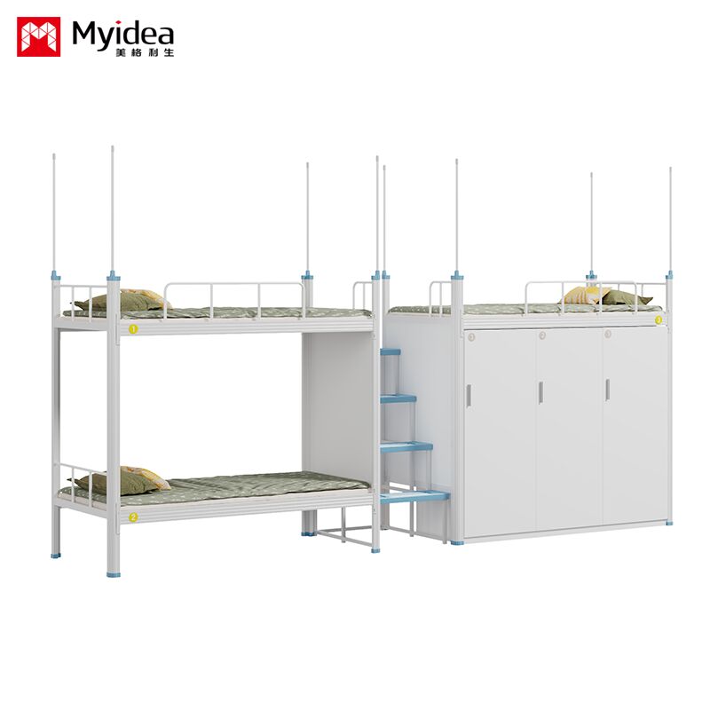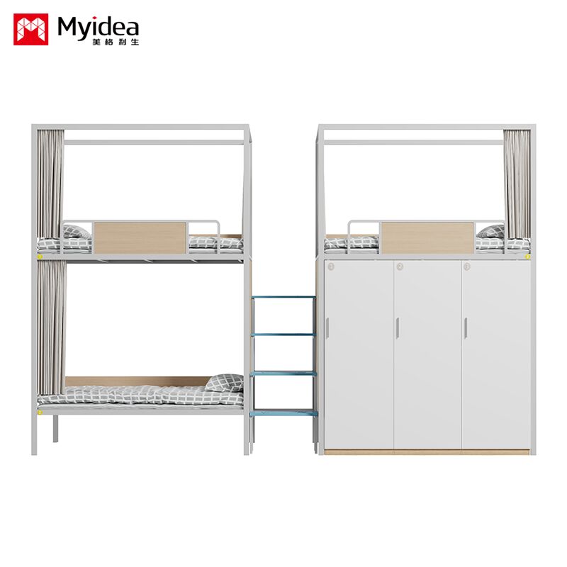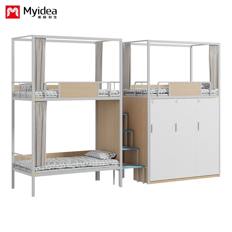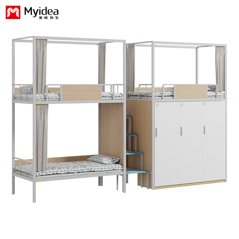 تخت سه نفره خوابگاه با کمد، چراغ شب ایمن، نردبان پلهای، نرده بلند، پرده تخت، تخت خوابگاه مدرسه