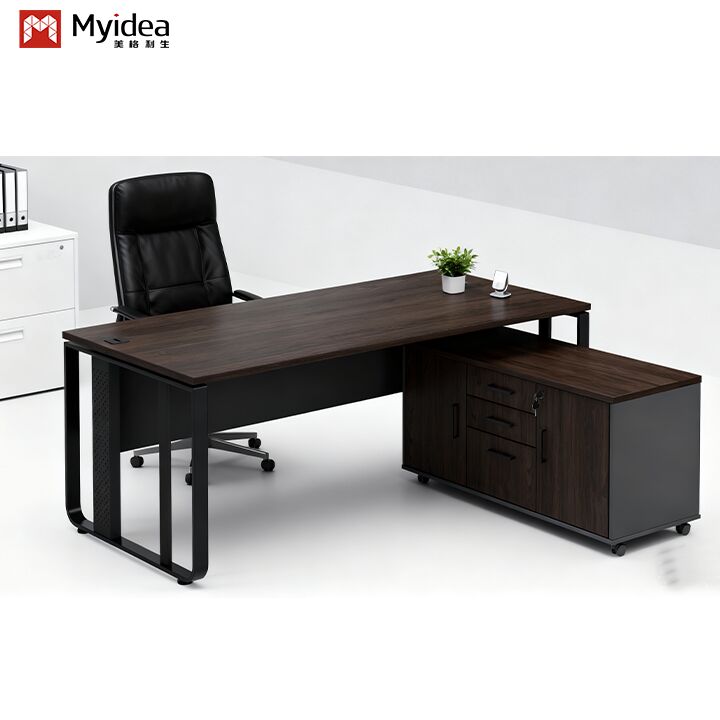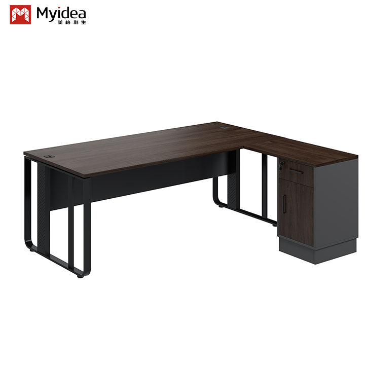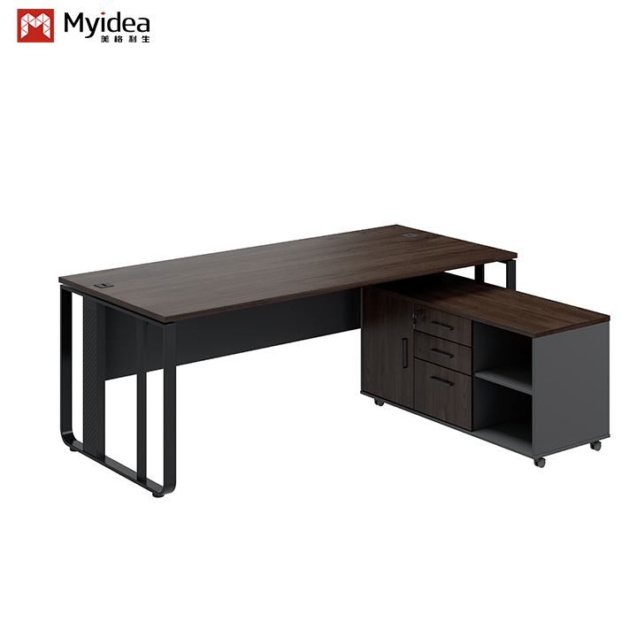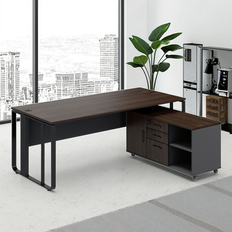 A Contemporary Luxury Boss's Executive Desk with Steel-legged Design and Storage Sub-cabinet for Office Building